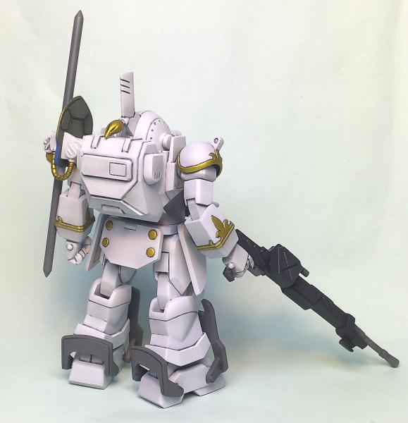 〇ボーナスパーツとして、量産機を再現するための 頭部羽飾り、右肩、前腕が付属。 パーツを選択することにより、 量産型の「P・ATH02-DT ホワイトオナー」 として組み立てる事も可能です。 |